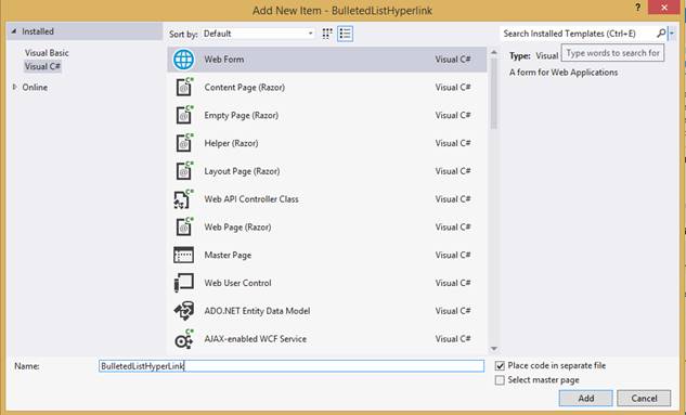Now double click on BulletedListHyperLink.aspx.cs file that is the code behind file.