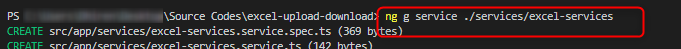 Create a service named excel-services.service.ts file for the operation using the terminal.