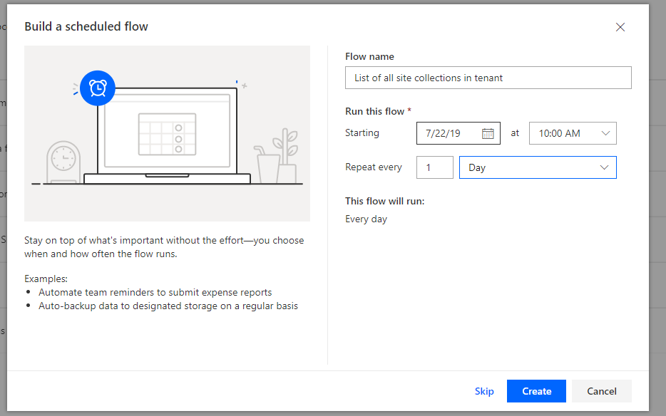 In this article, we will learn how to create an MS flow to get a list of all site collections in a tenant. This use case can be used when we need to have a scheduled MS Flow performing some activity daily based on all site collections in the tenant.