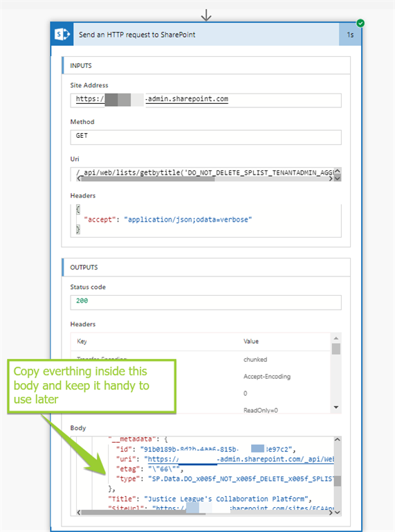 I will explain below why the below step is required before even completing our MS Flow. For now, run the workflow. Once run successfully, go to the flow run history and expand 'Send an HTTP request to SharePoint'.