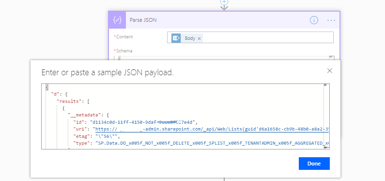 Now, to use SharePoint REST API response data easily in MS Flow, we will parse the JSON that we got from the above action. If you want to know more about Parse JSON and when and why it has been used, refer to this