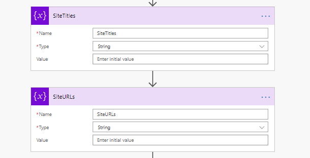 Next, we will initialize two array variables to hold the Site Titles and Site URLs respectively.