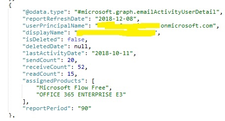 Step 7. Email Activity Report in Graph API v1.0 provides the results in CSV format not in JSON format so we have no need to use the top. In a single API call, we can retrieve all the user results.