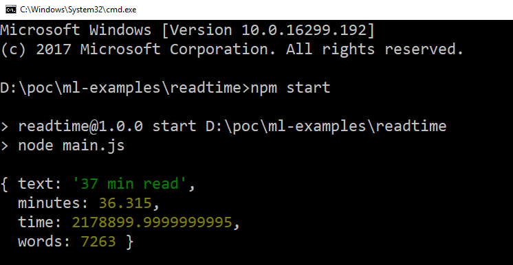 In the above example, first, we are reading the file and getting the data using readFile function. After that, we are using the readTime function to get the estimated time.