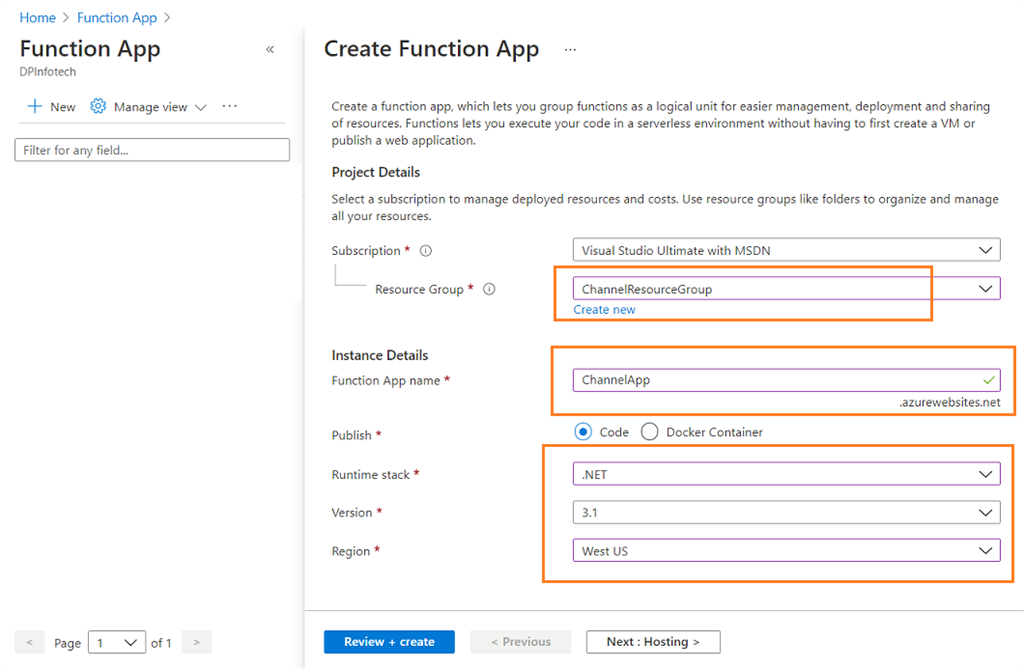 The below image shows the required fields for creating a function app. To know more about how to create a