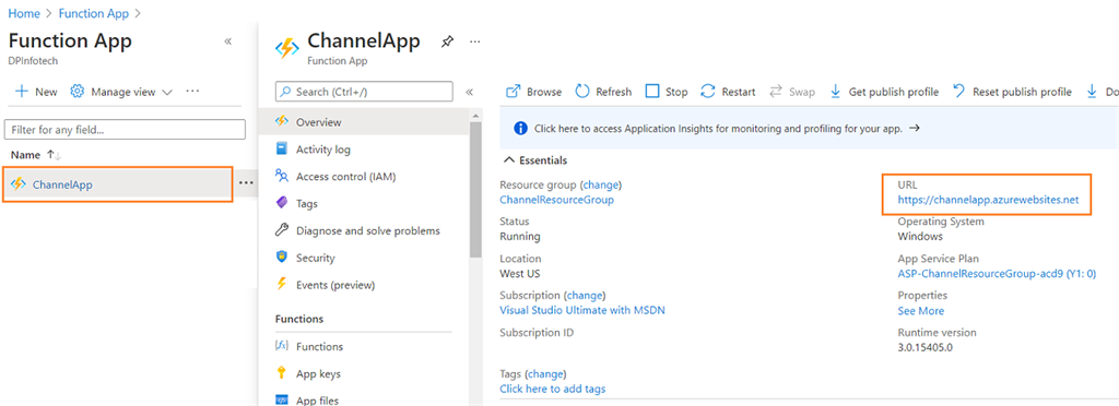 Once Function App is created, you will notice that a URL is generated as shown below,