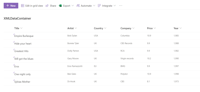 function fnUploadToList(Title, Artist, Country, Company, Price, Year){