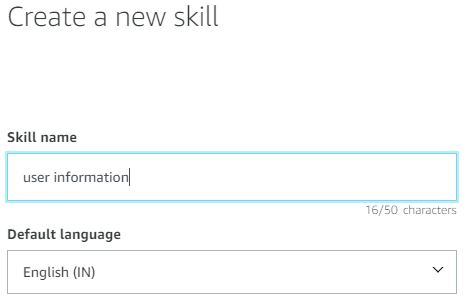 To create a new skill, first, we need to login into the Alexa developer console, we need to mention the unique skill name and select the default language according to our location.