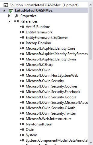Create a ASP MVC project . Here, I have created a project named "LotusNotestoASPMvc", using Visual Studio 2013.