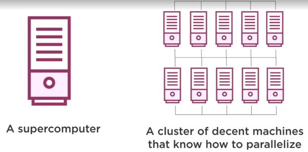 There will be multiple machines and multiple processors. It holds a set of nodes called cluster, where no node is a Super computer , which acts as a single entity. This system can scale linearly and if you double the number of nodes in your system, you will be getting double the storage. It also increases the speed of the machine to twice.