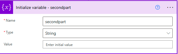 Step 5 - Initialize a variable of type ‘String’ and name it as ‘secondpart’. You can choose naming as per your convenience. The reason I have declared this variable is