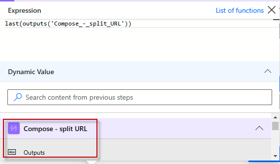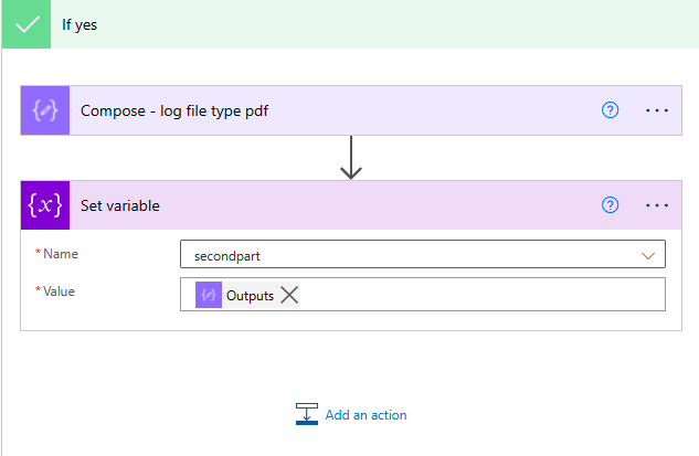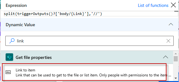 - extract the relative URL of the document and then store in this variable so that it can be used in action ‘send HTTP request to SharePoint’ to get the required file properties.
