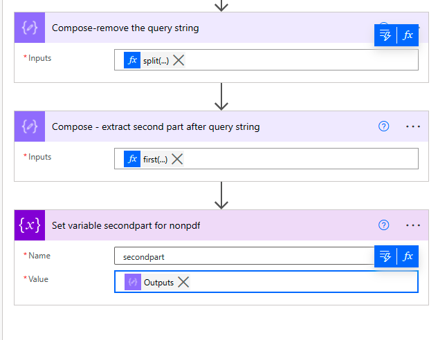 If it is not PDF there will be extra query string to the link and we need to trim query string at the end of the link after trimming https. For this I am using split function again based on ‘?’ separator