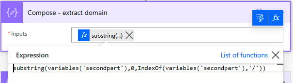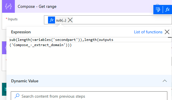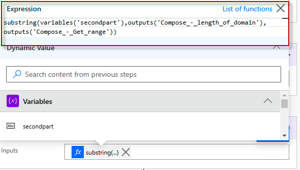 The 61 value that we got from the compose range, which is subtracting domain length from ‘Total length of secondpart variable’.