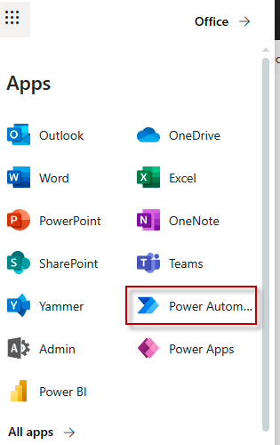 Step 2 - Go to the flow designer portal either from the Office 365 menu from https://portal.office.com or by using the flow portal https://flow.microsoft.com