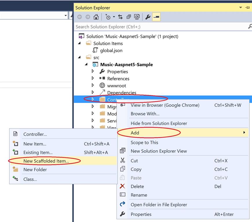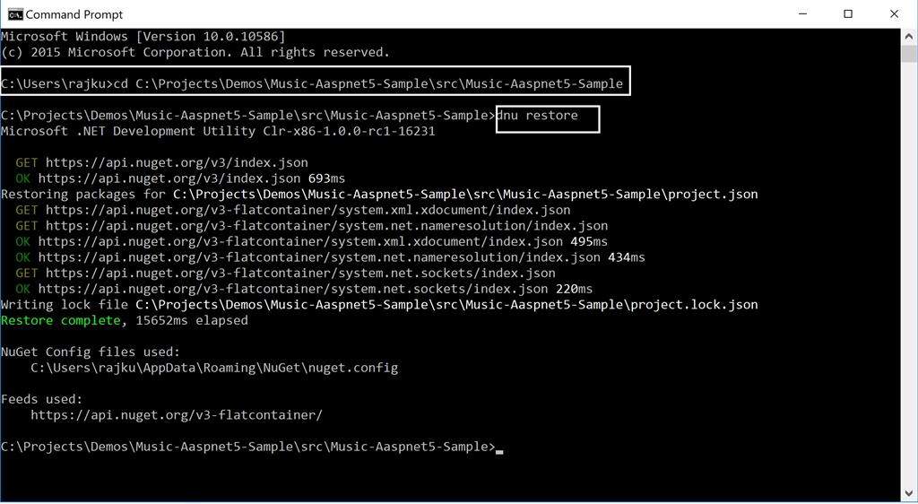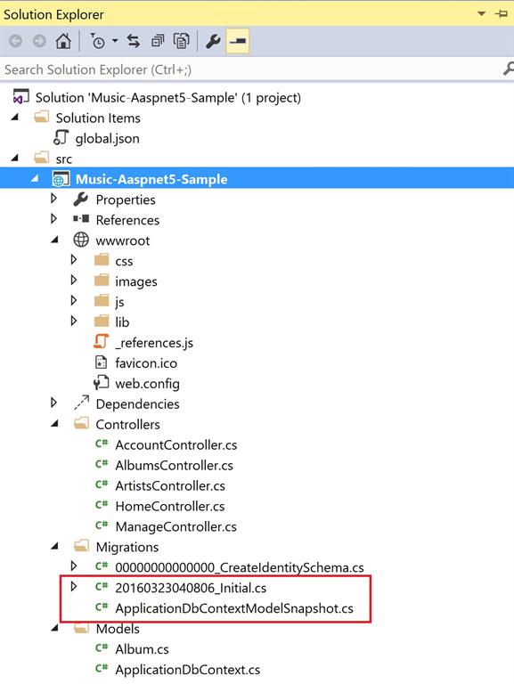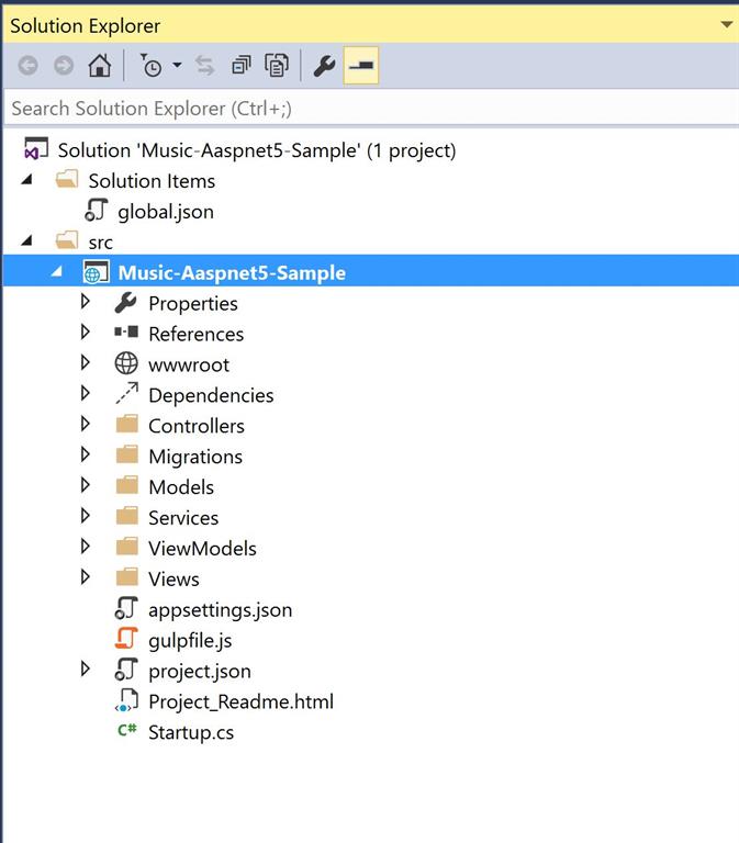 • project.json – It defines .NET execution environment (DNX) project. It is the project.json file that contains all the information that DNX needs to run and package your project.