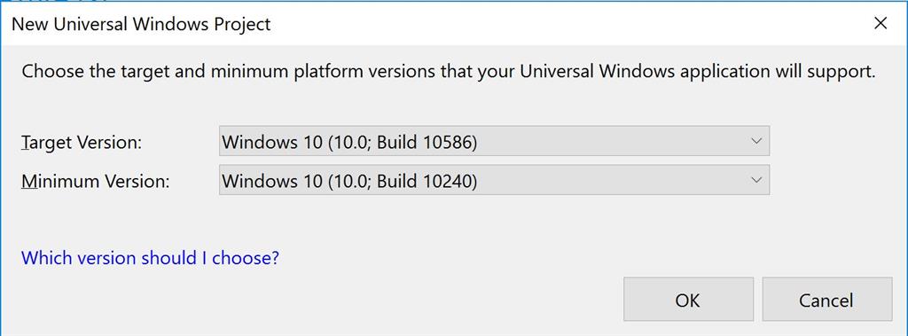 Now choose supported target version and minimum version, then click OK button. In my case, I have selected Windows 10.