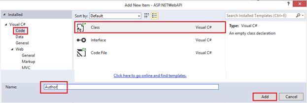 Let’s try to create something more interesting, in this article I'm going with only Get() method. I need to create a model class. So just go to Models folder in the solution and right click on it and choose a New Item.