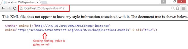 Now let’s run our Web API, press F5 to run it. So we successfully have XML representation of our list of Authors. In this request we get our Get() method.