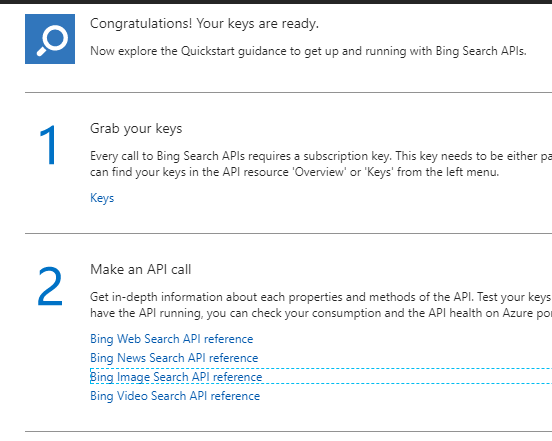 - Click on the second option and choose “Bing Image Search API reference”.