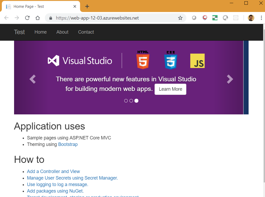 - Select Azure subscription and created the web-app.