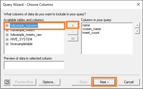 - Next we will get Query Wizard window, and select Table and Columns. After that click Next Button.