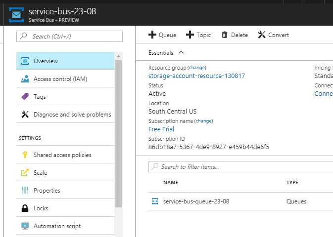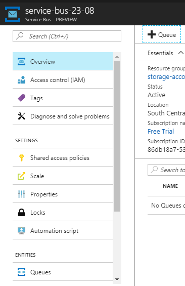 - Implementation – Adding a queue and accessing it from the Service Bus