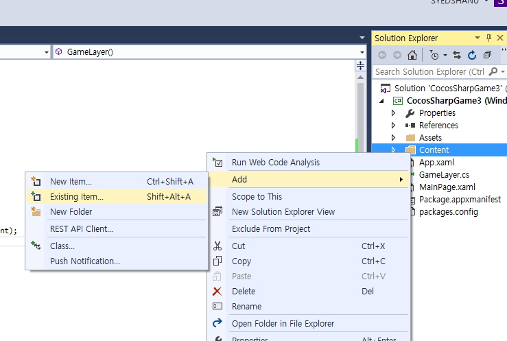 Once our project has been created, we can see MainPage.Xaml and GameLayer.CS file in Solution Explorer.