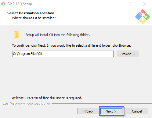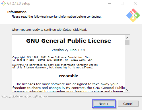The Git window will open and click "Next" button.