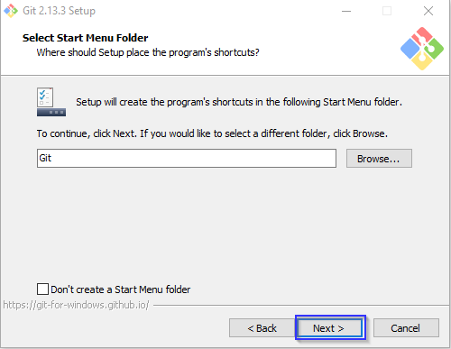 Select start menu folder window will open. Click "Next" button.