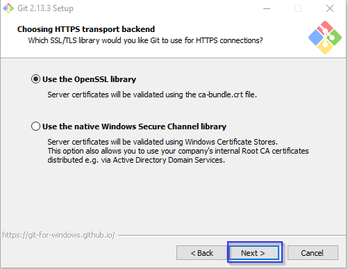 You can continue the default option for using the OpenSSL library, click Next button.