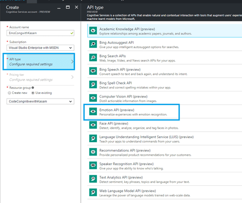 - API Type - Cognitive services provide a set of awesome APIs. For this article, we will go with Emotion API