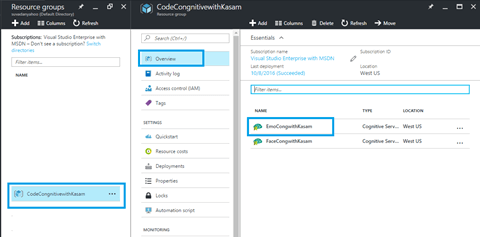 Click on Resource groups => CodeCognitivewithKasam (resource group selected) => Overview.