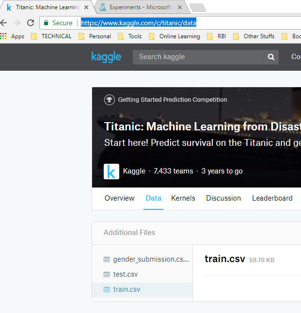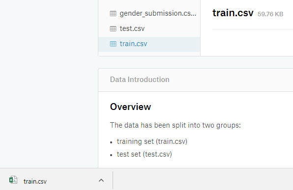 - Download the train.csv file on the file system, which contains the mock-data for the Titanic.