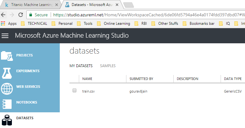 Implementation – Extract data from the titanic data-store and create a dataset in Azure
