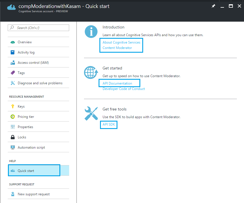 Click on Quick Start for getting a quick introduction to Cognitive Services, along
