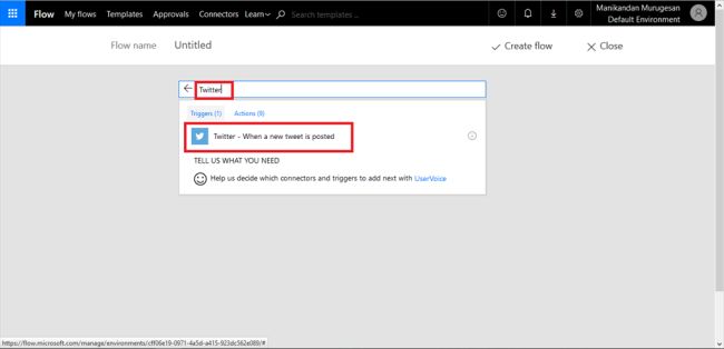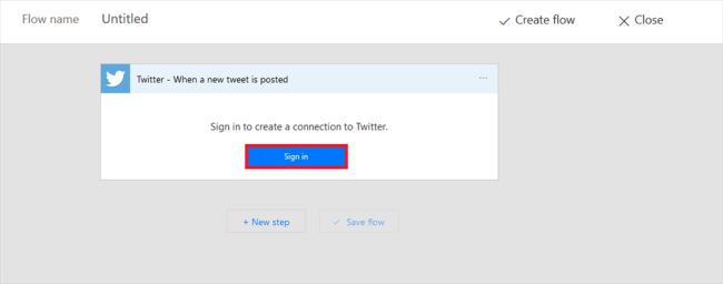 First of all, you need to authorize both the accounts in the flow. Then, search for Twitter in the search bar.