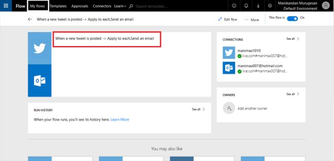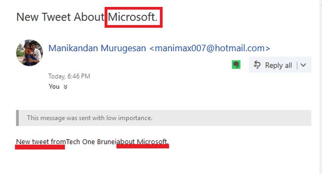 My goal is to achieve the new mail in my Outlook account every time a new tweet about MICROSOFT comes up on the Twitter page.