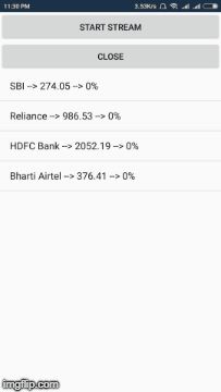 In the above code, you can see that stream item is reading from ChannelReader and updating item to list view to populate the changes. I'm using ArrayAdapter with list of stock items to show to stock items in the list.