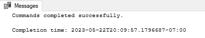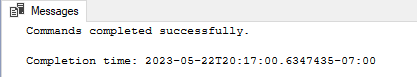 You should see a message, “Command(s) completed successfully.” This means your new database is created.