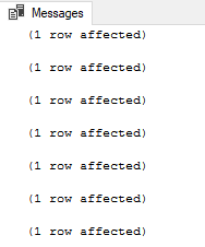 Execute the above query, and you should see a message, “(1 row affected)” which means data was inserted successfully.