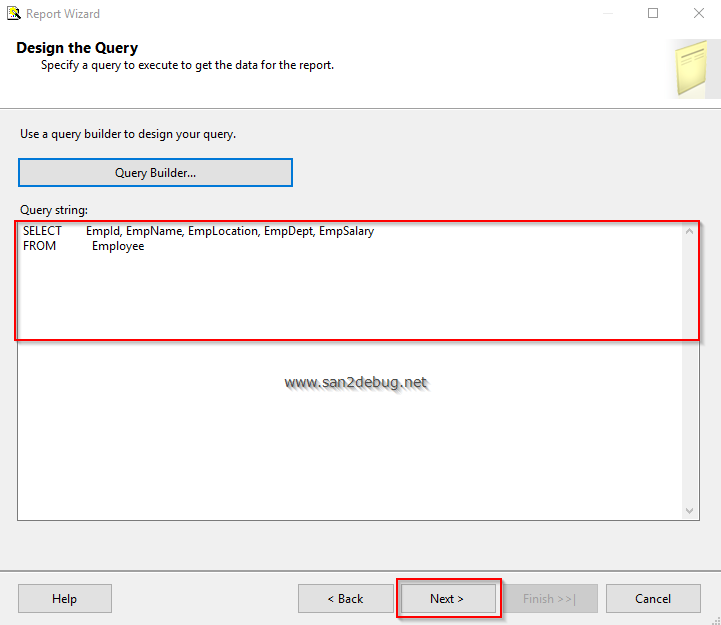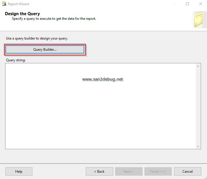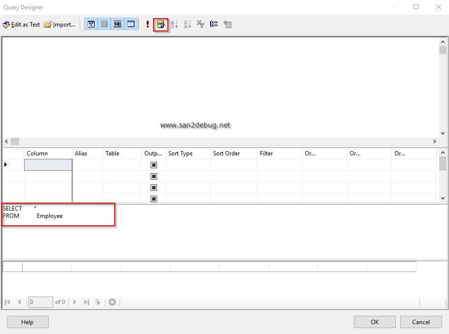 In the "Query Designer" window, type the query for the table in which you want to load the report and execute the SQL query, followed by clicking the SQL icon.