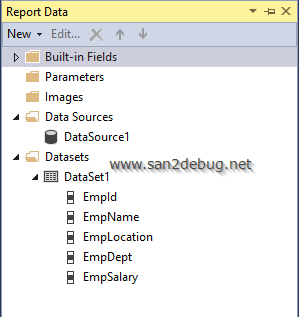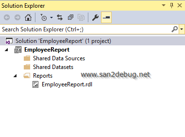 After creating the report, you can see the report data and solution explorer structure, as shown in the following screenshot.