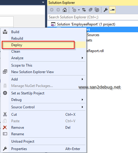 Go to the Solution Explorer, right click the EmployeeReport and click "Deploy" context-menu item.