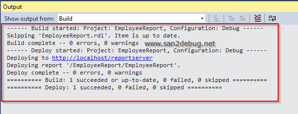 After successfully deploying the report to the Report Server, you will see the information from the output window, as shown in the screenshot.