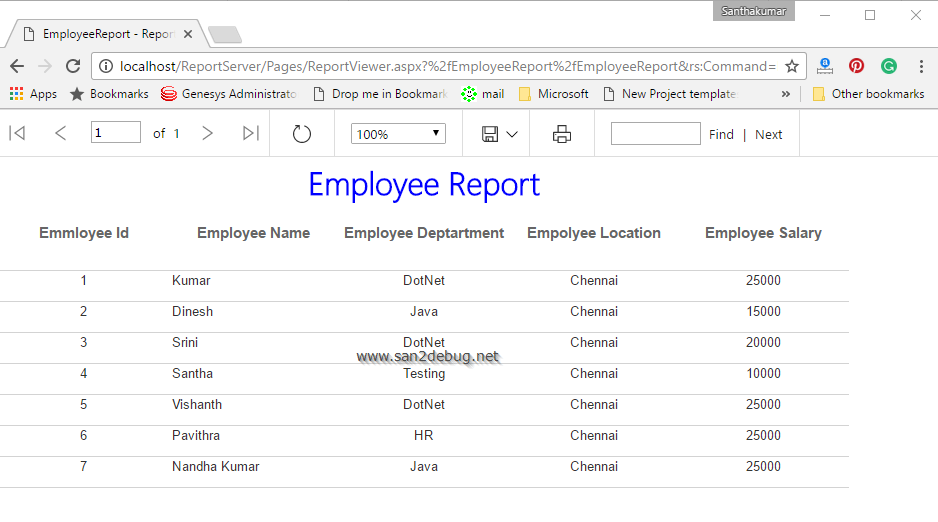Now, run the report application followed by EmployeeReport project and clicking the EmployeeReport.