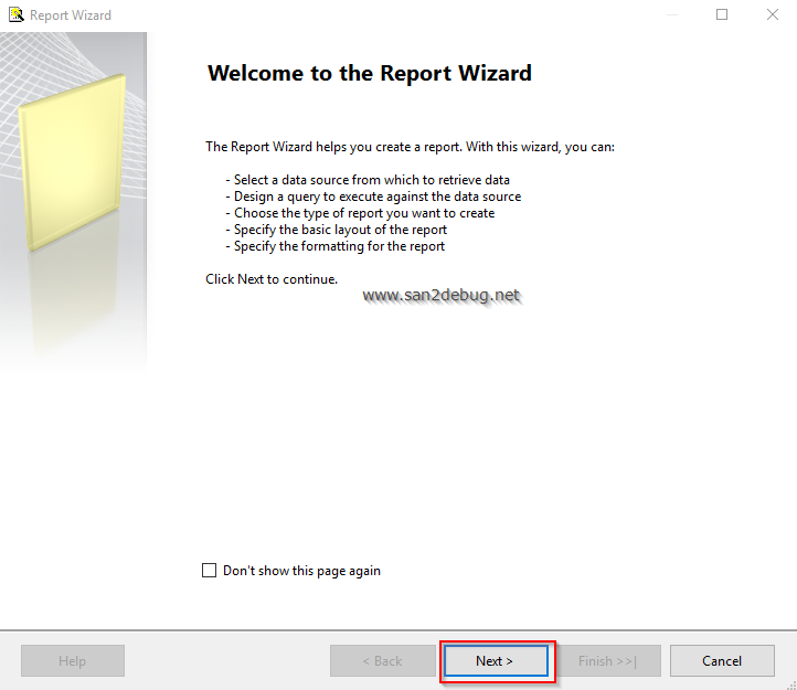 The "Report Wizard" window will open. Click the "Next" button.