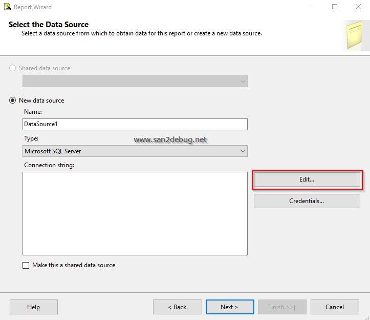 Then, "Select the Data Source" window will open. Just click the "Edit" button.