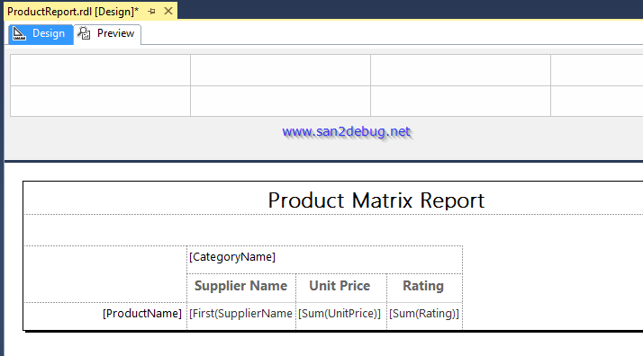 Now, you can run the report Application, followed by SSRSMatrixReport and click the ProductReport.