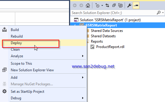 Go to Solution Explorer. Right-click the EmployeeTableReport and click the deploy context-menu item.